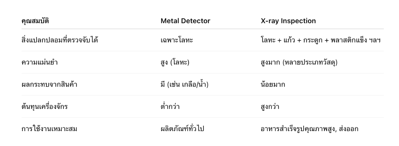 เปรียบเทียบ Metal Detector และ X-ray Inspection
